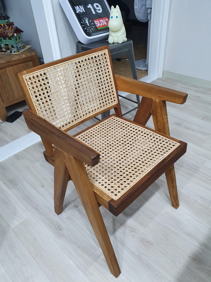 요즘 흔해진 라탄 의자들은 사실 1950년 세계적인 가구 디자이너인 피에르 잔느레가 인도의 도시화 프로젝트에 참여하여 제작한 의자를 모티브로 한 것으로, 인도의 도서관 같은 관공서에서 실제 사용된 의자 디자인이 모더니즘과 미니멀리즘과 조합되어 더 큰 주목을 받게 되었다고 합니다. 의자 하나만으로, 베트남 휴가 갔을 때 느꼈던 휴양지 느낌을 집에서도 느낄 수 있어서 이 의자는 꽤 괜찮은 선택인 것 같습니다. 그리고 방석 밑면에 X자 프레임이 덧대어 있어서 앉았을 때 안정된 착석감을 느낄 수 있었습니다.