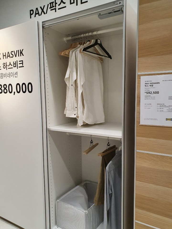 25평형 미만 규모의 아파트나 빌라에서 붙박이 옷장이 준비되어 있지 않을 경우, 이케아의 팍스 하스비크 옷장을 구매한다면 공간을 효율적으로 이용 가능합니다.